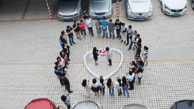 A new report out of China, a Chinese man went all out to win girlfriend hand in marriage by proposing in the middle of a heart made from 99 iPhone 6s on Singles’ Day in China.
