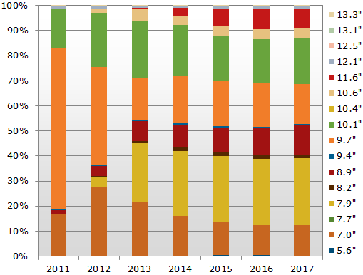 “The tablet market has been led by Apple’s 9.7” iPad, but in 2013 a new class of small tablets will take over the market. Tablet PCs with 7-8” screen sizes are expected to account for 45%, or 108 million units of the market in 2013, overtaking the 9.7” size which will account for 17% share or about 41 million units,” according to the report.